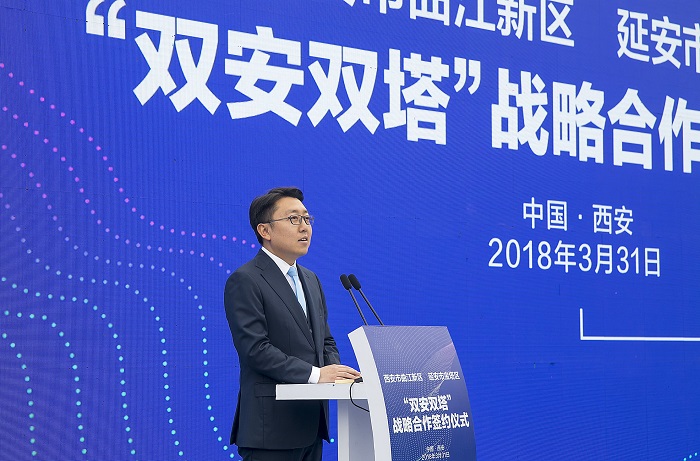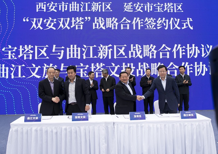 3月31日,延安市和西安市在曲江新区举行“双安双塔”战略合作签约仪式,仪式上我区与西安市曲江新区携手签订友好区文化旅游发展共建合作协议和文化旅游产业投资有限公司战略合作协议,与西安市曲江新区、英雄互娱、量子产业等共同启动建设量子晨双创产业园区。省委常委、延安市委书记徐新荣,省委常委、西安市委书记王永康,西安市委副书记、市长上官吉庆,延安市委副书记、市长薛占海,延安市委常委、宝塔区委书记刘景堂,宝塔区委副书记、区长杜鹏,以及西安市曲江新区、延安市相关县区领导和英雄互娱、量子产业负责人出席参加。