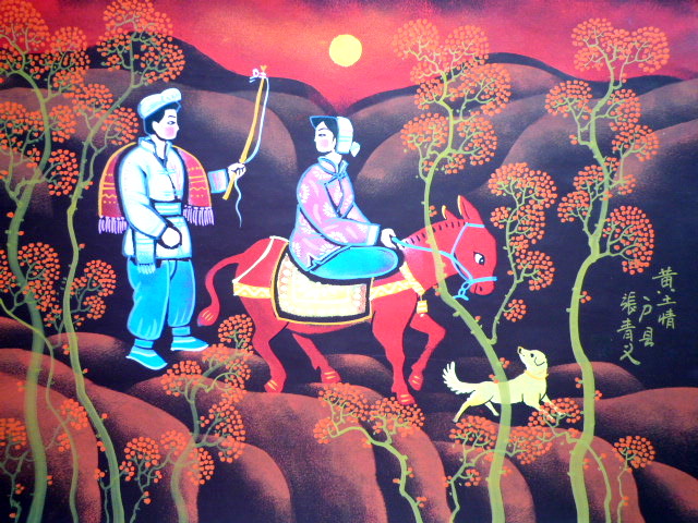 毛驴是陕北人的主要交通工具和耕作伙伴,陕北人昵称它为“生灵”。毛驴不仅有可爱的外表,而且生性也确实灵动,它能感觉到主人的喜怒哀乐,主人斜跨毛驴背上,铃声叮当,蹄声嗒嗒,得意之时放声高歌,毛驴也仿佛通了人性奋蹄飞奔。这生灵还能感觉来主人的用意,你若赶着它走,他懒懒散散,你若骑上它,它可能消极怠工,只有斜跨着它,毛驴便觉得主人只是临时坐在它的背上,随时可能下来,只要自己奋力奔跑,主人便会下马。于是便有了陕北一怪,斜跨毛驴走得快。