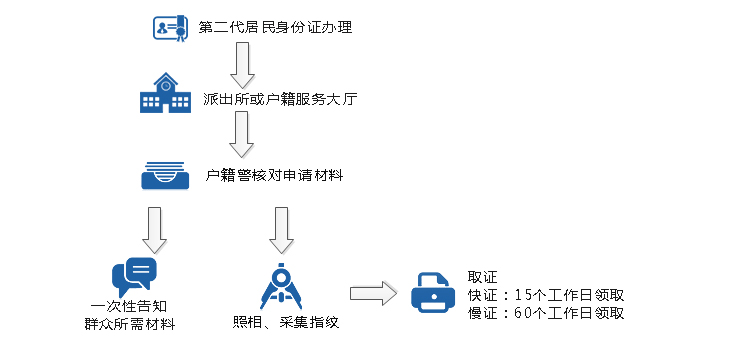 应携带居民户口薄,到当地派出所申领、换领、补领二代居民身份证。 |
